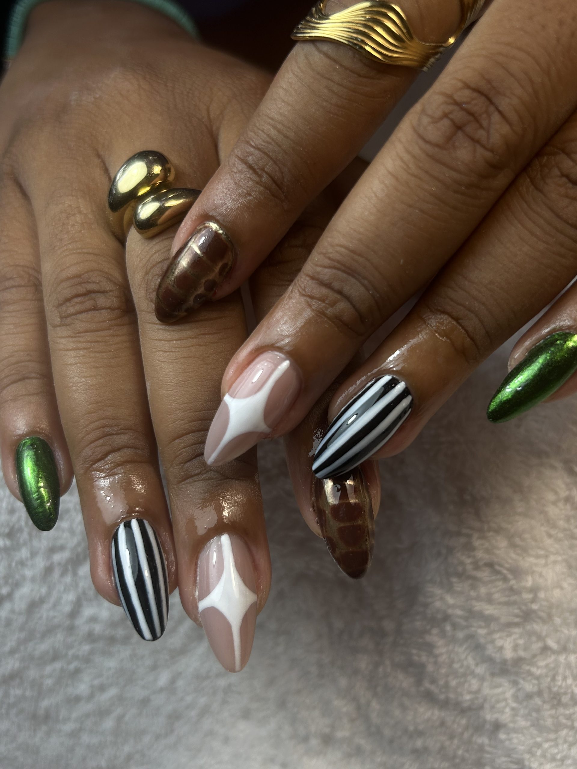 Laisse parler ta créativité avec ma prestation nail art ! Que tu sois plutôt minimaliste ou extravagante, je réalise des designs uniques adaptés à ton style. Strass, paillettes, dessins… Je fais briller tes ongles comme jamais !